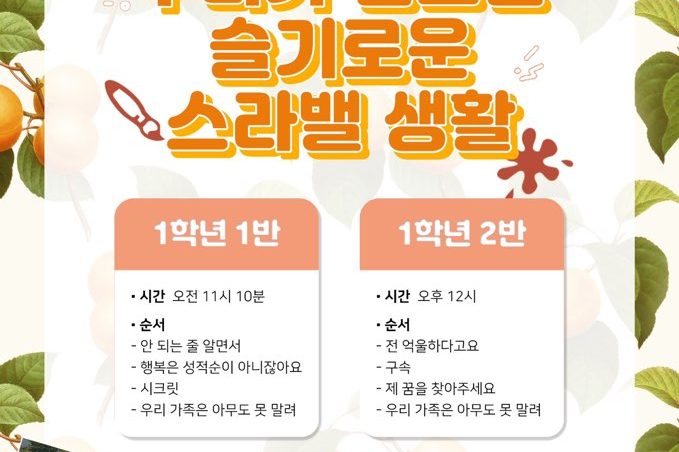 뮤지컬 [올슉업] 2023년 달구벌고등학교 3학년 졸업공연! 가. 기 간 : 2024년 1월 4일(목) 오전 10시나. 장 소 :…