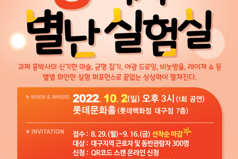 ○ 공연 안내– 공 연 명 : 사이언스 매직쇼 ‘마술은? 과학이다!’– 공 연 일 : 2020년 10월 25일(일)–…
