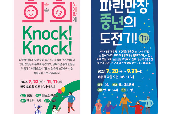 문화체육관광부 주최하고, 한국문화예술교육진흥원 주관하는 ‘2023 생애주기별 문화예술교육 지원사업 꿈다락 문화예술학교’에 대구 공연 및 교육 전문 예술단체인 예술로가 선정되어…