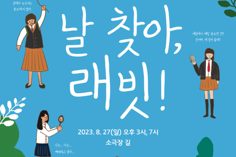 제 5회 청소년 극단 하다 하계공연, 연극 <날 찾아, 래빗!>2023년 8월 27일 일요일 오후 3시, 7시 공연, 소극장…