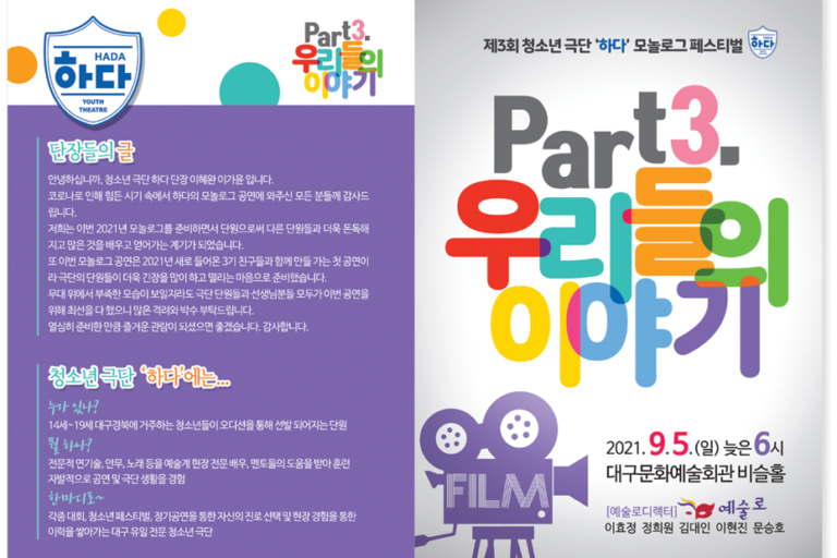 2021 제 3회 청소년 극단 ‘하다’청소년 극단 ‘하다’는 2019년 창단되었으며 전문적 연기술, 안무, 노래 등을 예술계 현장 전문…