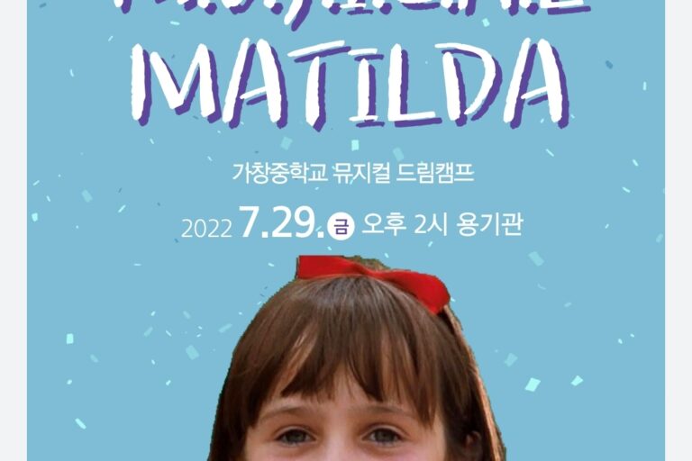 가창중학교 뮤지컬 드림 캠프, 뮤지컬 [마틸다]2022년7월29일 금요일 오후 2시 용기관 가. 기 간 : 2022.07.25(월) ~ 29(금) 오전…