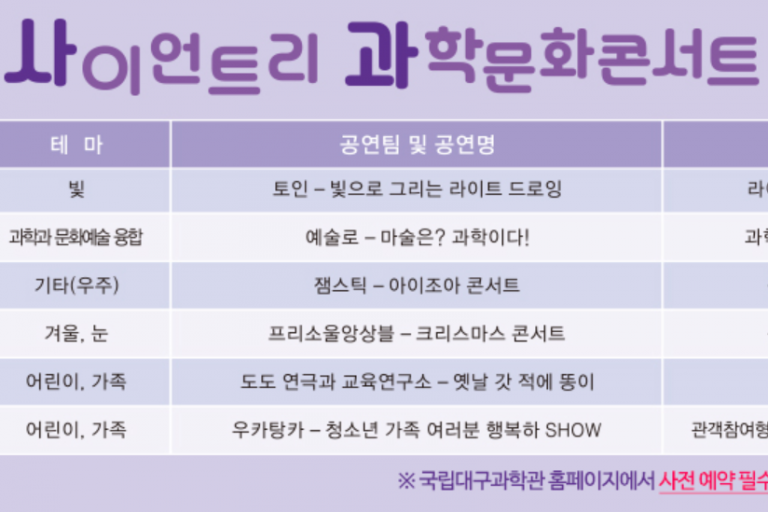 ▶사이언스 매직쇼 ‘마술은 과학이다!’ ☆공연팀 : 대구 예술로 ☆공연팀 소개 : 전문공연예술단체인 예술로는 폭넓은 장르와 융합하여 음악극, 연극,…
